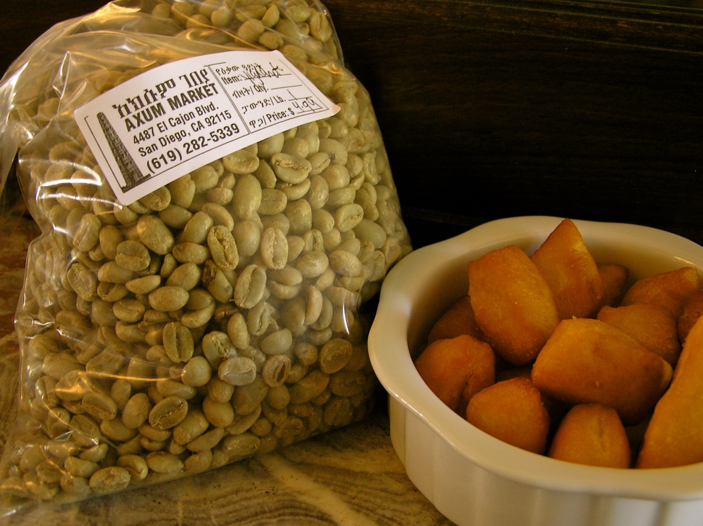 Mandazis and green coffee beans ready for me to roast – unexpected treasures.