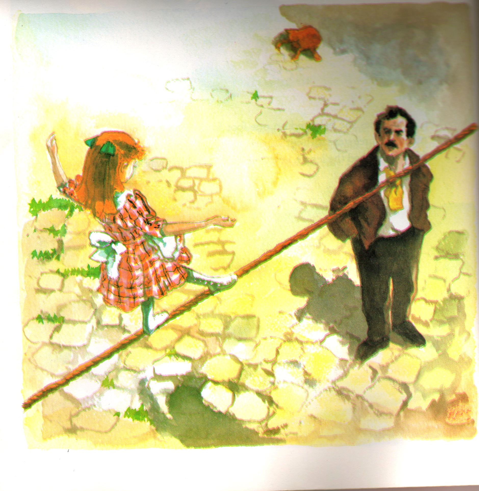 The Flying Wallendas of Niagara-crossing and Grand Canyon-crossing fame were in town offering a free demonstration. When I explained to my oldest that wirewalkers were coming, she knew exactly what I meant and anticipated the event eagerly. When we saw the wire set up, I pointed and told the girls “Look! Just like Mirette!” And it was. The Wallendas didn’t disappoint. Patriarch Tino and his children wowed and awed us with their great feats for forty-five minutes. While performing, Tino spoke about the tragedies in their family through the generations and what motivates them to keep doing what they do – traveling, performing and sharing their deep Christian faith. After the demonstration, I took my three-year-old up to meet Tino. I told him we owned the book Mirette on the High Wire and my girls were glad to see the performance today with that reading experience as the backdrop. Tino lit up.