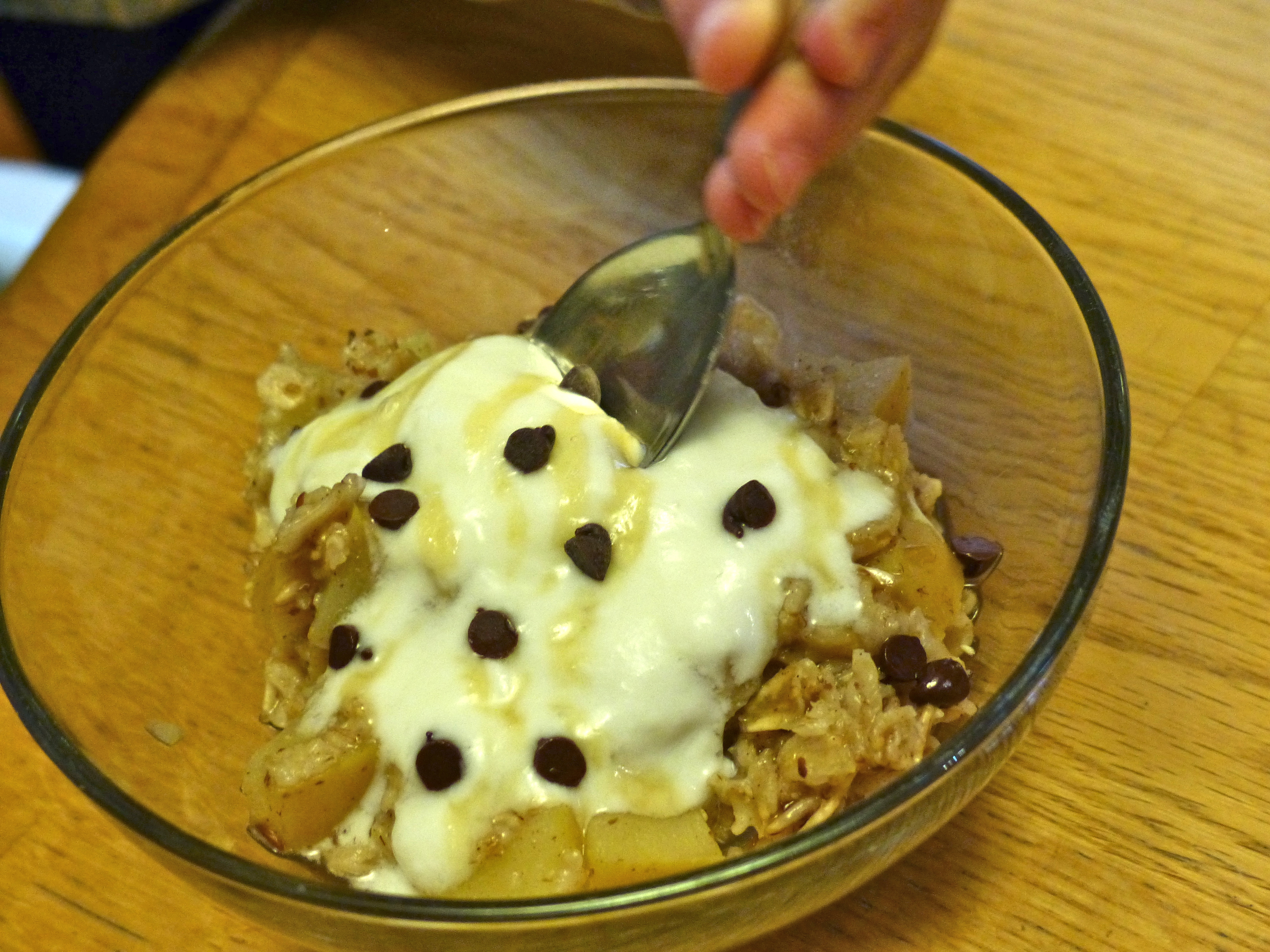 Warm cookies for breakfast! Yum. It’s the perfect breakfast set-up though. We’ve been doing finely diced apples and cinnamon lately, sometimes with molasses instead of brown sugar. And always a little coconut oil. Kids never complain about that for breakfast.