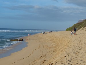 Then we reached the beach. The warm water, clean sand and distant vistas, like all the beaches in Hawaii, didn’t disappoint. The kids scuttled down dunes, explored an ancient beached army tank, crashed with the waves and raced the creeping water within eye-shot of the Napali coast.