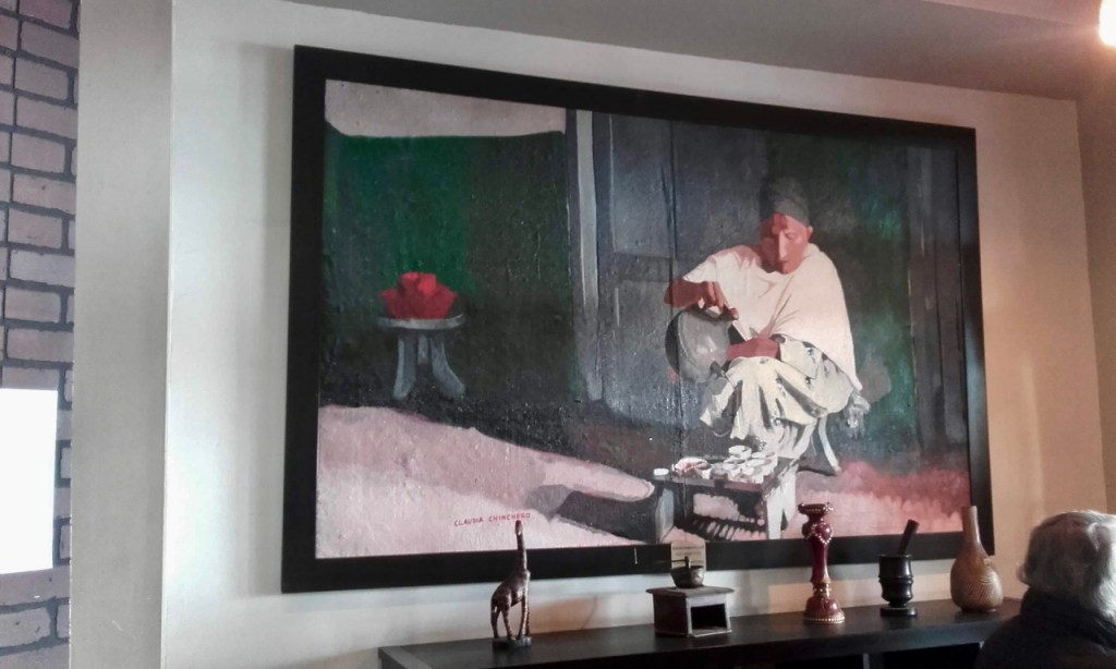 The paint on a mural-sized creation of the Ethiopian coffee ritual gleamed in the light. It was textured, applied to burlap coffee sacks and affixed to the wall. Incredible. The artist had an Italian name. I had to ask about. The owner came of out the back corner behind the counter and explained his daughter’s art teacher created the work for his shop. The teacher splits her time between Italy and Tijuana. Makes sense, since I was in Tijuana, where there’s a notable arts scene. And now a growing coffee scene. Perfect for those us who like to take advantage of the fact that I can leave my house, cross the border without stopping, run errands, and come back through the SENTRI line in the time it takes someone to get gas at COSTCO on a Friday afternoon.