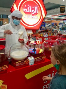 Observing our breakfast table, I realized it’s not much different than our morning table in the U.S. The distance from Manama, Bahrain to Iran’s northwestern fertile fruit-growing region is about 700 miles. If you live in Memphis, TN and have bought Michigan apples, it’s like that. The mangos had to take a plane ride of 3000kms (1800miles). But that’s nothing compared to the trip tons of Chilean produce takes to arrive in the U.S. in order for some Americans to eat fresh fruit all year. And the distance those mangos travel, even if by air, is shorter than the distance Florida oranges travel to arrive at markets on the American west coast.